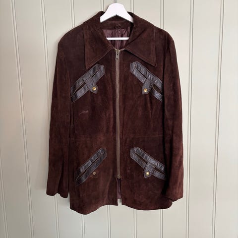 Nydelig vintage skinnjakke i merke Aleksander selges. Den er svært pent brukt. Hel og fin, ingen anmerkninger. 4 knapper foran, 2 lommer foran og en lomme innvendig.