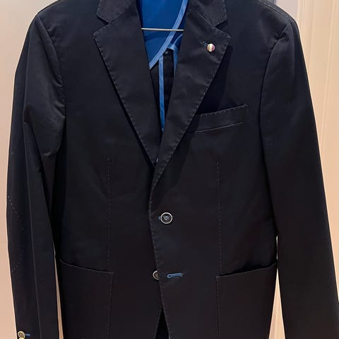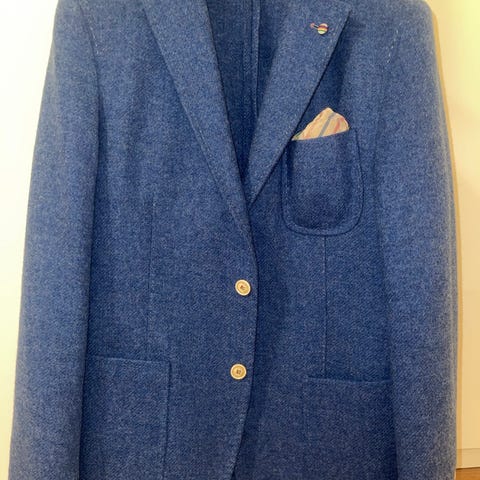 En mørk brun sport coat fra Manuel Ritz. Pent brukt, ustrukturert og i ullmiks. Varm, men ikke for varm. Perfekt for fine høstdager.