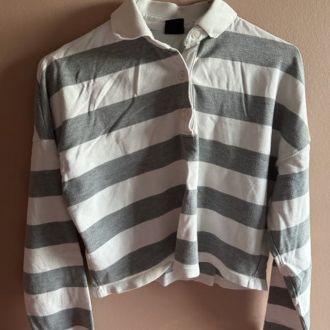 Gina Tricot skjorte i størrelse S, hvit med sorte vertikale striper selges. Laget i lett materiale, langermet med knapper foran. Passer til kvinner, selges da den ikke brukes lengre.