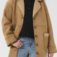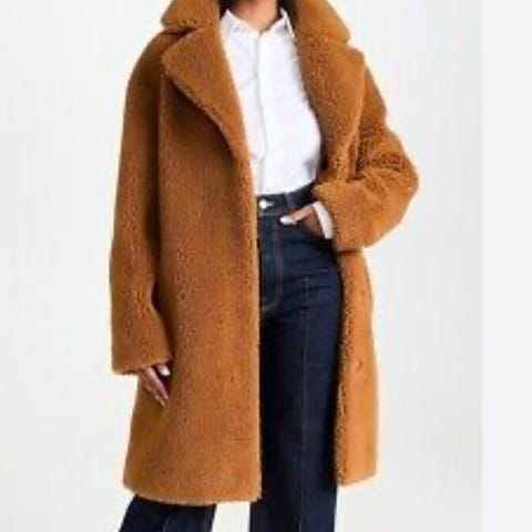 Zara TRF Collection teddy sherpa vinterkåpe i brun fuskepels, størrelse S. Jakken har en myk utside, og «semsket» innside. Kan brukes på vranga.
