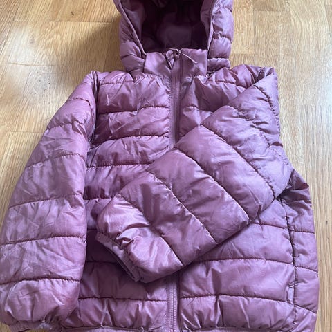 Fibt brukt lysrosa tynn boblejakke, str 98. Fra Kappahl.