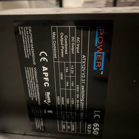 Teskywind Power Supply med flere kabler og kjølevifte. Strømforsyning for datamaskiner med standard tilkoblinger for ulike komponenter. Mange kontakter til skjermkort, vifter eller andre komponenter som bruker 8/6 pin eller molex.