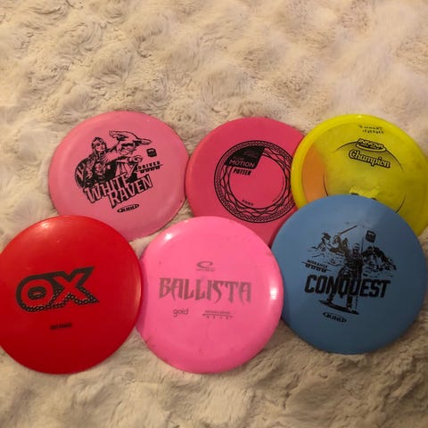 Sune Sport Disk golf sett sett med tre disk som er beregnet for ulike avstander. Lite brukt. Koster 229 per disk hos Sune Sport, selges for 300 for alle tre