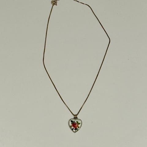 Skjeldent smykke. Dekorert med et kunstnerisk motiv. Formet som et hjerte, og tar seg godt ut på kjole eller genser. Selve hjertet er forhøyet og " dobbelt". Veldig fint. Ligger i original emballasje.