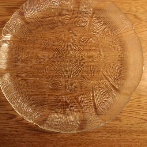 Rundt serveringsfat fra Norgesglasset. Det flotte fatet i glass har den nostalgiske norgeslogoen i midten som er kjent gjennom generasjoner. Fatet måler 32 cm i diameter og er perfekt til å servere både kaker, snacks og matretter. Serveringsfatet er solid og velegnet for både hverdagsbruk og i selskaper.