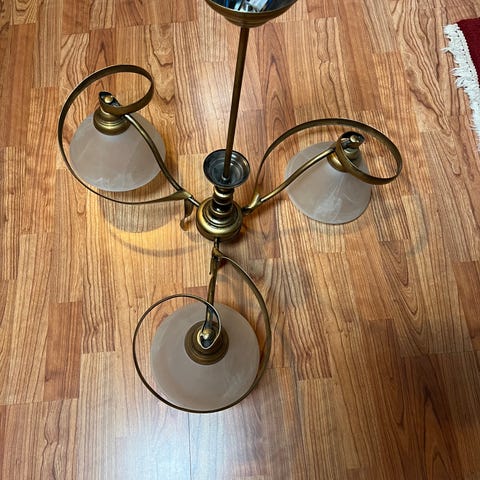 Stilig vintage taklampe med små glass kuppler og messing detaljer