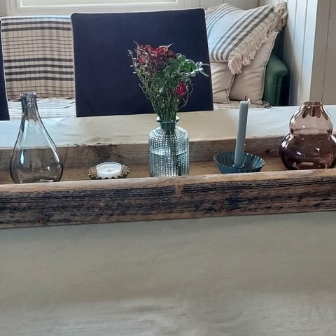Dette er en håndlaget vinflaske- og glassholder i tre.