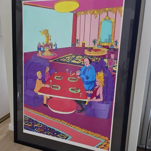 Autentisk tusj på papir tegnet av Pushwagner rundt mai 1998. En krevende periode i kunstnerens liv, Han var tilbake på gaten og sterkt rusavhengig og overlevde ved å tegne for en slant, nok til et måltid eller husly for natten. Verket er usignert, i tråd med denne type «gate» collager. Det ble vist på Galleri Kjeldaas sin utstilling i 2010.