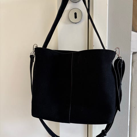 Skikkelig kul Don Donna veske i skinn. Vesken har en justerbar skulderrem og en kombinasjon av svart og beige. Den har flere lommer, inkludert en glidelåslomme på baksiden, og er egnet for daglig bruk. Som ny, ikke synlig brukt.
