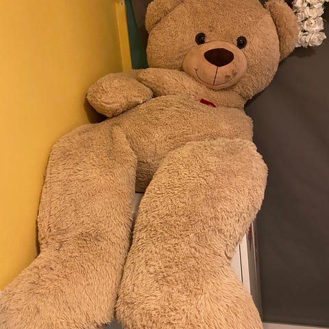 Selger denne store bamsen, ca 140 cm for 250 kr. Kan sendes men kjøper betaler for frakt.