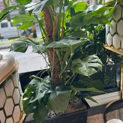 Monstera Deliciosa Variegata er en klatreplante med store, hjerteformede blader som har grønn og hvit marmoreringsmønster. Planten trives innendørs og krever moderat lys og jevn vanning. Den er egnet for dekorasjon i hjem og kontorer.