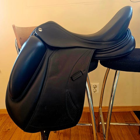Eksklusiv sal i slitesterkt kalveskinn. Salen har karbonbom med livstidsgaranti. Karbonen følger hestens bevegelser, og gir en svært behagelig følelse for både hest og rytter.