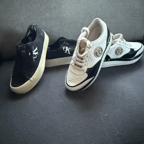 Calvin Klein sko selges da de ikke lengere blir brukt. Noen små slitasjer, men ennå mye bruk igjen i skoene. Den ene skoen har 2 små røde flekker som ikke går bort i vask. Har vært i hus med katt😊