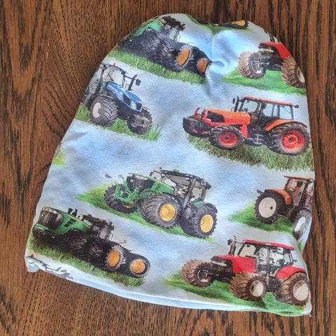 Selger to nærmest ubrukte luer i størrelse 50 samlet. Begge er i bomull. En grønn lue fra Bergans og en med traktormønster. Selges samlet for 75kr.