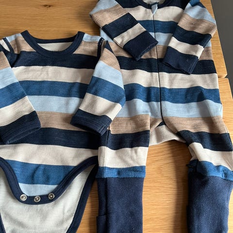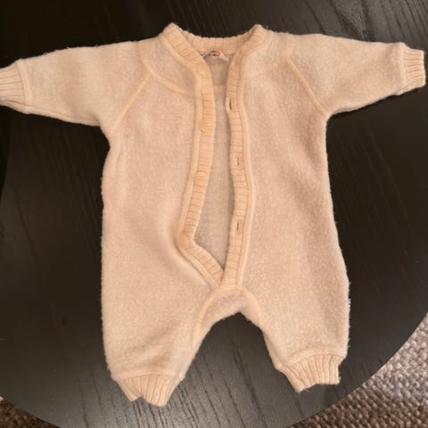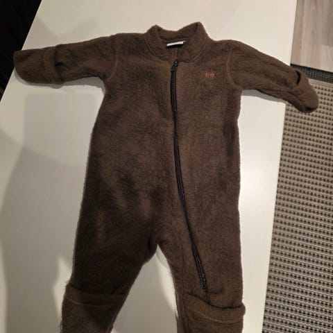 Dressen er lite brukt av ett barn og fremstår pen. Ingen anmerkninger foruten normal bruksslitasje for et plagg til en baby.