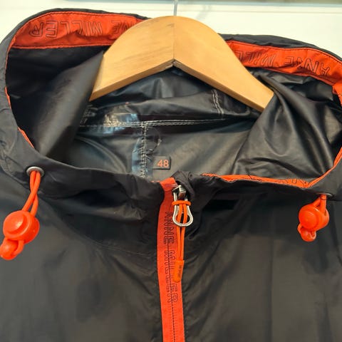 Vinterjakke med avtakbar hette i svart farge med fine detaljer, str L, men tror dette er junior størrelse, passer en 158. Pent brukt, ikke noen synlige bruksmerker.