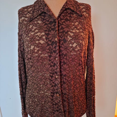 Vintage Lilla Glitrende Bluse/Topp Original 1980s.