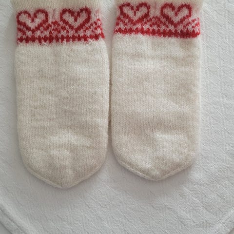 Helt ny hjemmestrikka kalender i fargene rosa og grå.