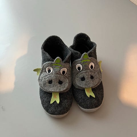 Selger noen gode tøfler som jenta mi har likt godt. De er store i størrelsen, så jeg mener de tilsvarer str. 23, selv om de er merket med str. 22.