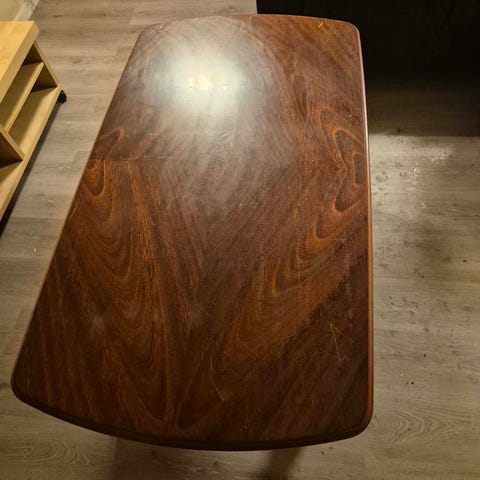 FINT SALONGBORD, KAN SKIFTE MED TIMG OPPI GLASSPLATEN VIS EN VIL HA EN DUK OPPI DER SOM JEG HAR NÅ ELLERS ERDEN BARE HVIT står på sele