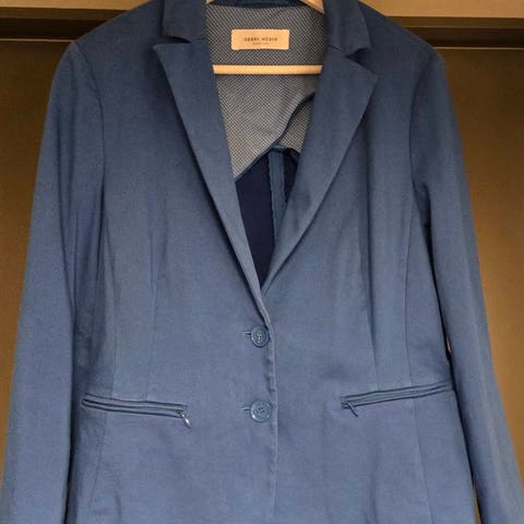 Nydelig klassisk mørkeblå dress, blazer, bukse og skjørt fra Gerry Weber. Som nytt - ingen bruksmerker da den nesten ikke er brukt. Behagelig kvalitet. 🌿