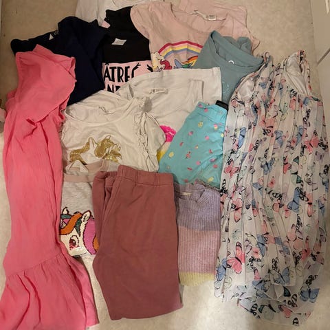 Selger en pakke med sommerklær, str 122/128, for kr 350.