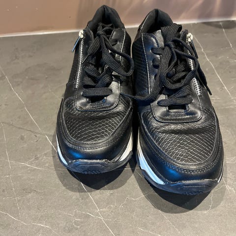 Flotte sneakers kjøpt på Mani for 799,- såvidt prøvd på men ble dessverre feil størrelse her. De er normal i størrelsen, str 38. Solid og god gummisåle og virker som gode sko.