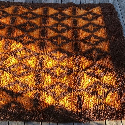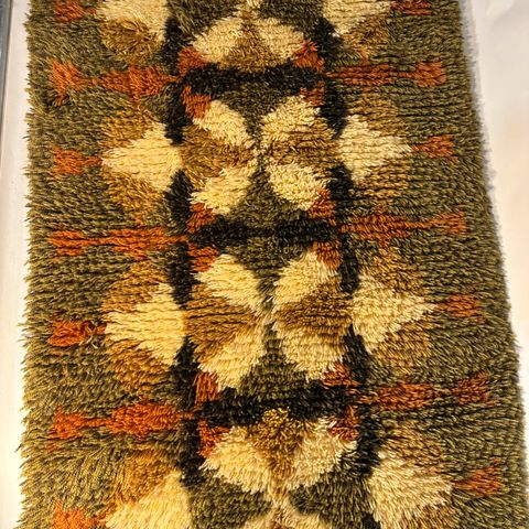 Flott retro håndknyttet rye, 75/127. Ullgarn, kr 750