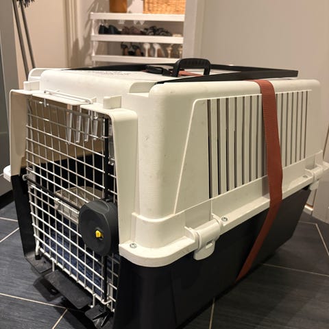 Må hentes her! Den dobbeltsidige tapen ble brukt pga et teppe som ble festet for hunden å ligge på. Teppet "holdt" seg på plass med tapen! Mye mulig en "ny innflytter/hund" ville like å ha et teppe som er festet på samme sted, og de små merkene blir skjult :).