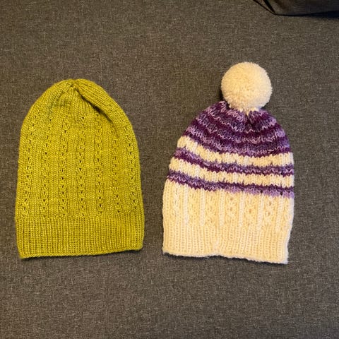 2 nye hjemmestrikka luer i ull str 2 og 4 år