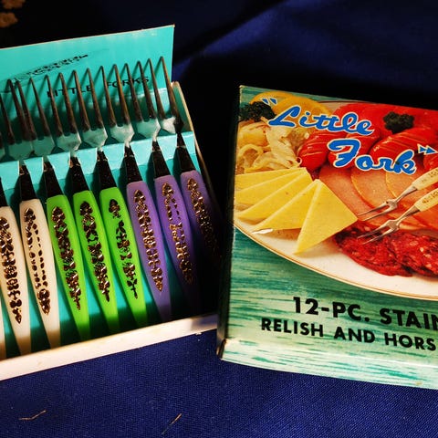 2 stk serveringsgafler i stål (oliven/ost/tapas)