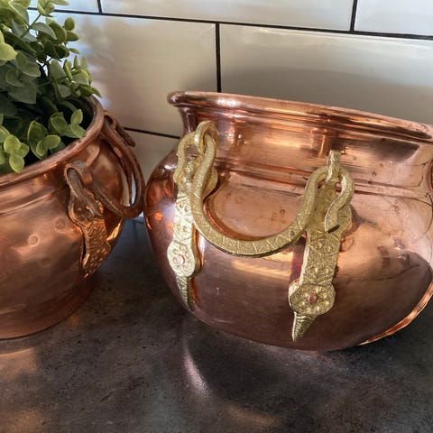 Vintage potteskjuler i kobber til å henge på vegg