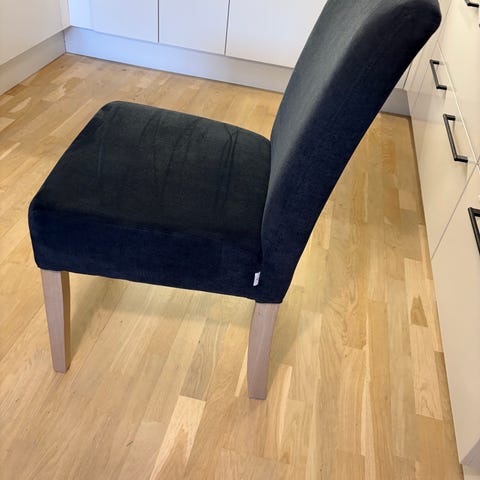 Selger 4 fine stoler i Olivia serien fra Fagmøbler. Stoff i belfast lys beige med svarte ben. Elegante og fine- gode å sitte i.