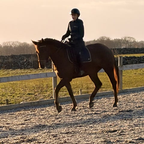 Kombinasjonen gir en hoppe med gangarter for dressur, men også mot og kapasitet for sprang og feltritt. Vi ser for oss at hun kan bli en fantastisk allroundhest – eller en spennende avlshoppe på sikt.