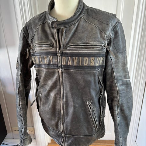 Harley-Davidson skinnhansker i svart farge. Hanskene har justerbare stropper ved håndleddet og er laget av skinnmateriale. Egnet for bruk ved motorsykkelkjøring eller annen aktivitet som krever beskyttelse og komfort for hendene.