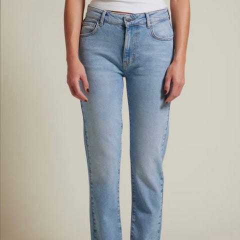 Bik Bok blå jeans i størrelse S med midjevidde W28. Jeansene har en rett passform og er laget av denimmateriale. Passer til kvinner.