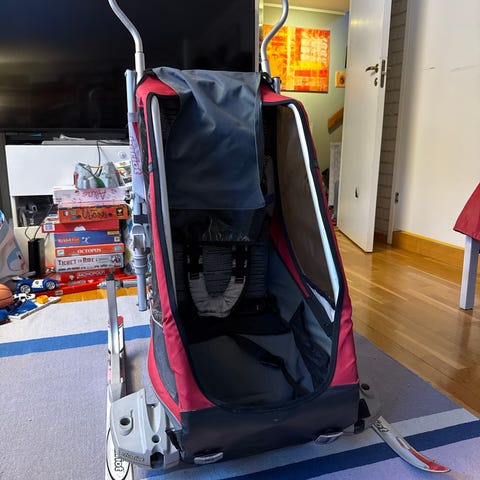 Pent brukt Thule Chariot sport (dobbelvogn) komplett med ski-, løpe- og skikit selges. En vogn vi har hatt mye glede av med sykkel, ski, løping og til vanlig trilleturer. Dette er modellen som har håndbrems, noe som er veldig fint da vognen blir noe tung å holde igjen i nedoverbakker med to barn i.