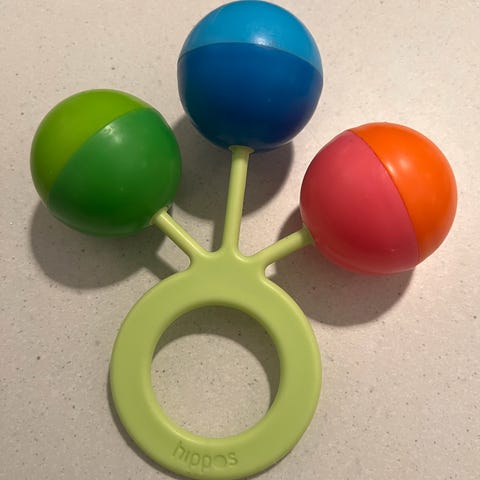 Rangle/rytmeinstrument formet som en krabbe. I hardplast. Behagelig lyd.
