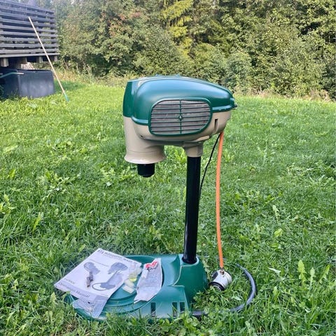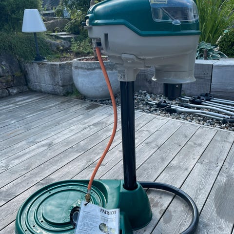 Mosquito magnet myggmaskin selges. Brukt noen år, og lagret noen år i bod. Veldig effektiv mot mygg/knott. Følger med 1stk luktstoff og 6 stk gass rensepatron samt adapter og bruksanvisning.