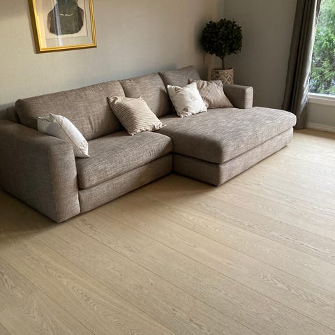 Grunnet mye jobbreiser i inn-og utland er sofaen lite brukt.