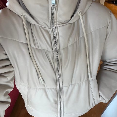 Sølvjakke fra bikbok. Noen bruksmerker som man ser på bildet. Er en xs men passer alt fra xs til L. Følges med hette også