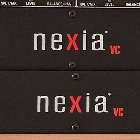NexLink: These two RJ45 jacks provide the NexLink Tx (transmit) and Rx (receive) connections. Up to four NEXIA devices may be linked together to share digital audio signals. Tx on one NEXIA device is connected to RX on the next device. NexLink utilizes straight through shielded CAT5 cabling, with a maximum recommended length of 5 meters per cable. When multiple NEXIA devices are placed in the Layout, NexLink blocks allow routing of digital audio between linked devices.