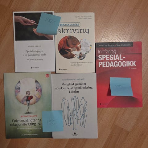 Div pensumbøker fra studier i norsk og spesialpedagogikk. Pris står under bildene. Si ifra hvilke bøker du er interessert i, så oppretter jeg en annonse hvor du kan bestille med fiks ferdig. Pris kan også diskuteres ved kjøp av flere bøker. Fraktkostnadene avhengige i hvor mange og hvilke bøker du ønsker ☺️