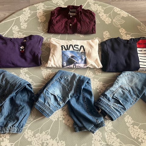 1 dongeribukse fra H&M str 116. Hull på kneet.