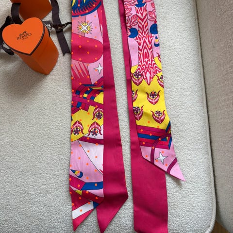 2 identiske Hermès Twilly skjerf for dame i blått mønster. Laget av silke. Str 5x86 cm