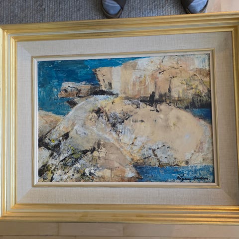 oil painting, abstract, art, blue, yellow, blått blå gul gult