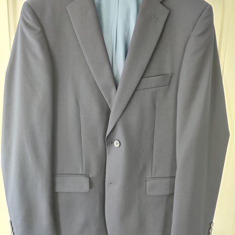 Dressmann dressjakke, bukse og vest i blå farge, størrelse 50/L. Brukt kun et par ganger.
