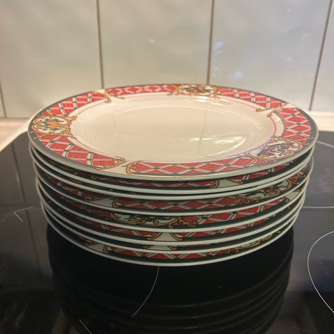 10 kopper med asjett kakefat 8 dype tallerkener og 12 middags tallerkner