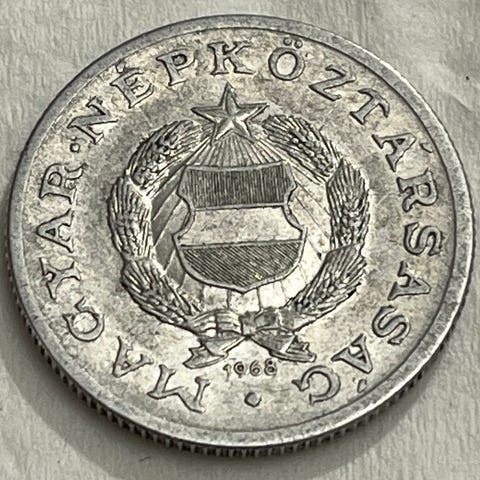 Ungarn 5 Forint mynt fra 1985. Mynten har en diameter på ca. 24 mm og er laget av metall. Forsiden viser et portrett av Kossuth med teksten "MAGYAR NEPKOZTARSASAG". Baksiden viser verdien 5 Forint med det ungarske riksvåpenet og årstallet 1985. Mynten er egnet for samlere eller som en del av en myntsamling.