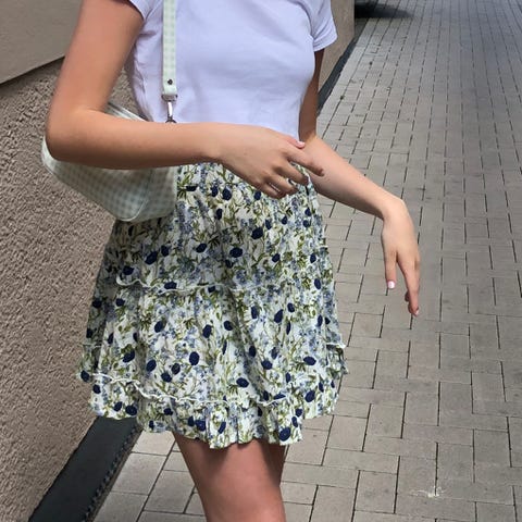 Modellen bruker vanligvis størrelse L, men blusene er litt romslige i størrelsen. Alle bluser inkluderer et belte man kan ta av og på og knytte bak på ryggen for å få den passformen man ønsker!